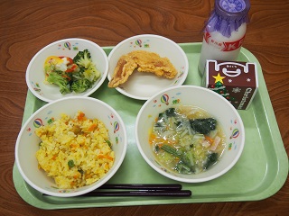 今日の給食 投稿日時 : 2016/12/22 ei/ho ★カレーピラフ★牛にゅう★ポテトスープ★手羽先のからあげ★カラフルサラダ★クリスマスケーキ今日は、もうすぐクリスマスということでクリスマス特別献立でした。みなさん、楽しそうにセレクトデザートを食べている様子でうれしく思いました。今日は今年最後の給食でした。来年も安心・安全でおいしい給食を作れるようがんばりたいと思います。よろしくお願いします!!