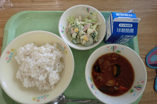 今日の給食 投稿日時 : 2017/07/20 ei/ho ★夏野菜カレー★牛乳★キャベツとツナのサラダ今日は、夏野菜をたっぷり使ったカレーです。かぼちゃ・なす・ズッキーニを入れています。野菜を揚げてからカレーに入れています。野菜をしっかり食べて、夏バテを防ぎましょう。