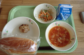 今日の給食 投稿日時 : 2017/08/30 ei/ho ★ミルクパン★牛乳★とりにくのなしだれやき★アーモンドサラダ★ミネストローネ今日から2学期の給食が始まりました。夏休みが終わり、元気がないなあと心配していましたが、ほとんどの人がしっかり食べてくれました。暑い日が続いているので、完食を目指してがんばってほしいです。今月の給食目標は、食事のマナーを身につけようです。疲れていても、食器を持って食べてほしいです。