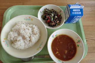 今日の給食 投稿日時 : 2017/09/26 ei/ho ★ポークカレー★牛乳★ひじきとツナのサラダ今日はカレーライスです。運動会の総練習があり、食欲はどうかなと思いましたが、いつもより早く食べ終わることができました。ひじきが入ったサラダもつけたので、貧血予防にもなると思います。