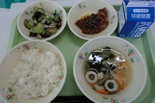 今日の給食 投稿日時 : 2017/09/25 ei/ho ★麦ごはん★牛乳★とりのからあげ★かいそうサラダ★かきたま汁今日は、人気のとりのからあげです。おいしいととても評判でした。運動会まであと少し、しっかり食べて、運動会で全力が出せるといいなあと思います。