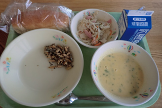 今日の給食 投稿日時 : 2017/11/08 ei/ho ★玄米パン★牛乳★ポテトポタージュ★かむかむサラダ★アーモンドフィッシュ今日は11月8日「いいはの日」です。給食では、かみかみメニューにしました。すべてかみごたえがある料理だと、食べるの大変な人もいるので、ポタージュを組み合わせました。かみごたえがあることや歯が抜けて食べにくいということもあり、食べるのに苦労した人もいましたが、今日は、完食できました。よくかんで食べるといろいろと良いことがあります。これからも時間を見ながらよくかんで食べてほしいです。