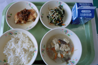 今日は持久走大会でした。給食時間には、たくさんの人が結果を報告してくれました。目標がピッタリ達成できた人、何秒か違った人バラバラでしたが、練習から一生懸命していたことがよくわかりました。今日はもりもり食べてくれた人と疲れていつもより食べることができなかった人に分かれましたが、とりごぼう汁の汁だけが少し残りましたが、残食が少なくて良かったです。