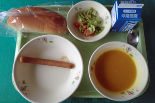 今日の給食 投稿日時 : 2018/10/31 ei/ho ★コッペパン★フランクフルト・トマト・レタス★かぼちゃのポタージュ 今日は、ハロウィンです。ハロウィンにはかぼちゃのお化けのランタンが登場します。給食では、かぼちゃのポタージュを作りました。 そして、今日のトマトは、湯前産のトマトを使っています。今から収穫の季節になります。来年の6月まで、納品していただけます。