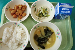 熊本県は日本有数の米どころで、おいしいお米がたくさん収穫されています。給食に出ているのは、「うるち米」です。今日のおこわには、「もち米」混ぜて炊いています。いつものごはんよりもちもちとした食感になります。「もち米」は、おもちやおかき・あられなどに加工されます。