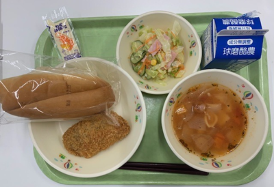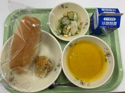 ココアパン、牛乳、タイピーエン、じゃがいものごまネーズでした。
