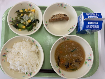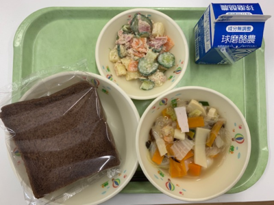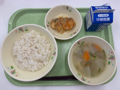 麦ごはん、牛乳、けんちん汁、たいの甘酢漬けでした。