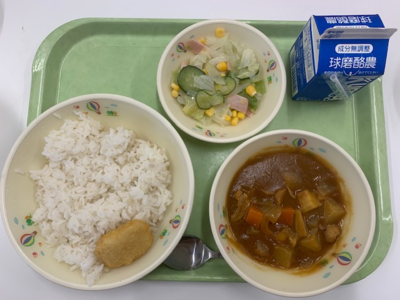 麦ごはん、牛乳、冬野菜カレー、チキンナゲット、コーンサラダでした。