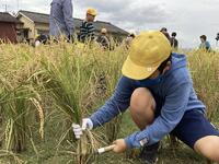 活動の最後に、指導者の方から「農業は、大変なだけではなく、収穫の喜びや食べる喜び、みんなを笑顔にすることなど、やりがいもたくさんです。これからもぜひ、関心を持ってくださいね。」と話がありました。活動後は「意外と楽しかったです!」「いっぱい稲刈りしました。頑張りました!」という声に交じって「俺、将来農業しようかなあ」と話す子もいたりして、子どもたちには、より実感の伴った活動になったようです。