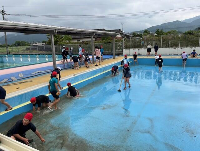 5、6年生がプール掃除をしました。