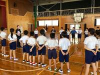 なお、集会の前には表彰式が行われ、上球磨小体連水泳大会で入賞した4人の皆さんに賞状が渡されました。おめでとう!