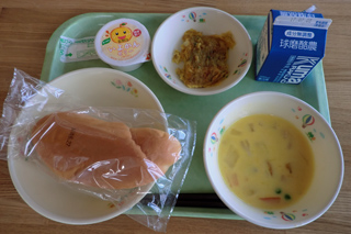 今日の給食 投稿日時 : 2017/06/22 ei/ho ★麦ごはん★牛乳★カレーコロッケ★ぶたしゃぶごまあえ★かぼちゃ団子汁今日は、かぼちゃを使った団子汁です。かぼちゃは、夏野菜のひとつです。夏野菜がおいしい季節になりました。苦手な人が多い夏野菜です。いろいろな料理に入れて、少しでも多く食べてほしいです。今日の団子はやわらかく、子どもたちもおいしいといってくれました。