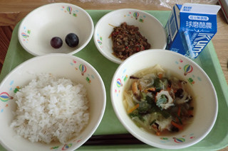 今日は、旬のぶどうを出しました。大喜びでした。湯前町はぶどうの産地です。食べ方にもこだわりがあるようで、皮を食べる人と食べない人がいました。私も夏休みに湯前産のぶどうを4種類食べ比べする機会がありました。どれもおいしく、甘みと酸味のちがいがあり、何個食べても飽きませんでした。たくさんの種類があるので、また出してあげたい気持ちはありますが、むずかしいので、おうちで食べてほしいです。