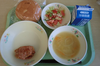 今日の給食 投稿日時 : 2018/03/14 ei/ho ★丸パン★鶏肉のオーロラソースあえ★レタス・トマト★コーンスープ今日は、湯前産のトマトを使いました。とりたてで、とてもきれいなトマトです。3年生は、トマト農家へ取材に行ったようで、「給食にも出てくると農家の人が言っていました。」と教えてくれました。パンにはさんで食べるよう、味をつけていませんでしたが、「そのままでもおいしいです。」と言っている人もいました。地産地消のすばらしさがよくわかる献立になりました。