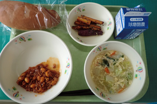 今日の給食 投稿日時 : 2018/11/21 ei/ho ★コッペパン★チリコンカン★白菜のとろとろスープ★さつまいものかりんとう今日は、アメリカ料理「チリコンカン」です。豆が入ったミートソースです。ピリッと辛いカレー粉やチリパウダーを入れているので、小学生には、辛いみたいでしたが、パンと一緒に食べると大丈夫のようでした。豆には、植物性たんぱく質が多く含まれているので、肉や魚と同じくらい食べてほしいです。