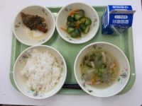 麦ごはん、牛乳、魚の香味だれ、春雨スープ、きゅうりのピリからでした。