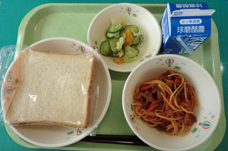 今日の給食 投稿日時 : 2018/07/04 ei/ho ★食パン★夏野菜スパゲティ★みかんドレッシングサラダ今日は、夏野菜を使ったスパゲティです。ピーマン・トマト・なすが入っています。どの野菜も苦手な人が多いですが、今日は完食でした。暑いときに食べると元気になる野菜ばかりです。これからも食べてほしいです。