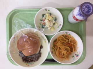 今日は、じゃがいもやきゅうり、りんごなどを角切りにしたものが入っていました。