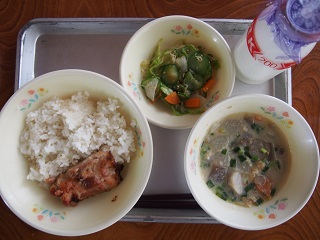 今日の給食 投稿日時 : 2015/12/01 ei/ho ★麦ごはん★牛乳★豆乳豚汁★とり肉のゆずみそ焼き★ごまじゃこサラダ今日のとり肉のゆずみそ焼きには、下村婦人会さんで作られた「ゆずみそ」が使われていました。ゆずは、これから旬をむかえるビタミンをたくさん含んだ食べ物です。そして、ごまじゃこサラダには、隠し味にスタミナ満点「にんにく」が使われていました。今年も残すところ1ヶ月となりました。しっかり食べて元気に過ごしたいですね。