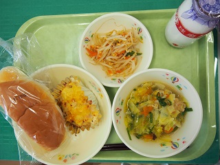 今日の給食 投稿日時 : 2017/03/15 ei/ho ★ミルクパン★牛にゅう★キャベツと肉だんごのスープ★ポテトグラタン★アーモンドあえ今日は、アーモンドあえに、いんげんを入れていました。いんげんには、かぜなどからからだを守ってくれるビタミンAやおなかの調子をよくしてくれる食物せんいなどが入っています。苦手な人も少しでもがんばって食べてくれているようで良かったです。