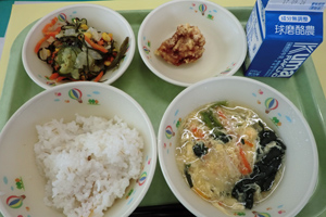 今日の給食 投稿日時 : 2017/09/25 ei/ho ★麦ごはん★牛乳★とりのからあげ★かいそうサラダ★かきたま汁今日は、人気のとりのからあげです。おいしいととても評判でした。運動会まであと少し、しっかり食べて、運動会で全力が出せるといいなあと思います。