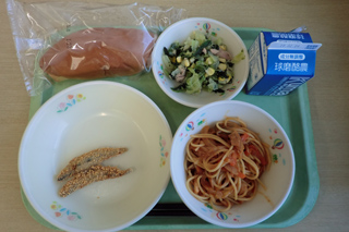 今日は、きびなごを使ったフライです。熊本県では、天草地域でとれる魚で、頭からしっぽまで丸ごと食べることができる魚です。カルシウム補給のためにも食べてほしいです。