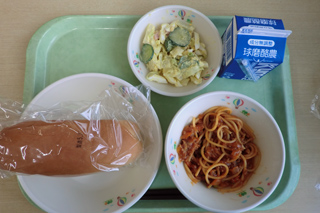 今日の給食 投稿日時 : 2018/05/23 ei/ho ★コッペパン★スパゲティミートソース★エッグサラダ今日はスパゲティです。久しぶりにミートソースにしました。給食に麺料理を出すとのびてしまうので、作るのが難しいですが、今日は残食が少なくよく食べてくれました。次回も上手に出来るよう、工夫してみます。