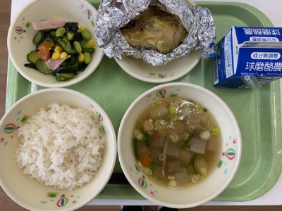 今日の給食 投稿日時 : 2021/02/01 tei 今日から2月ですね^^! 今月もよろしくお願いします。 今日の献立は 麦ごはん、牛乳、のっぺい汁、魚のホイル焼き、ごまドレサラダでした。 今日はホキという魚を使った手作りのホイル焼きです。 味付けはみそ、マヨネーズ、塩こしょうです♪ ホイルに包んで焼いた野菜にとても甘みがありました。 ホイルを開けるまで、中身が見えないため、子どもたちは何だろうと、わくわくしている様子でした^^