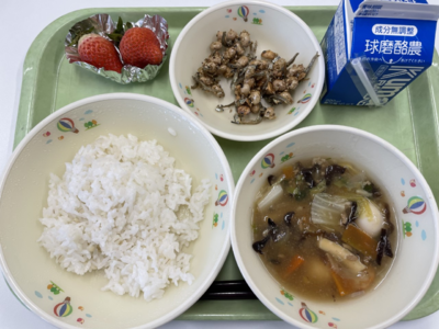 ふるさとくまさんデー 投稿日時 : 2022/01/20 tei 今日も朝から寒いですね。 今日の献立は ★麦ごはん ★牛乳 ★中華丼の具 ★いりこと大豆のかりんとう ★いちごでした。 今月のふるさとくまさんデーの注目食材は「いちご」でした。 湯前町の右田さんが作ってくださいました。 子どもたちもいちごに大喜びでした♪ おいしくいただきました^^ ありがとうございました。