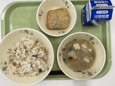 鶏ごぼう飯 投稿日時 : 2022/05/26 tei 今日は一日雨ですね。 梅雨の始まりもまもなくでしょうか・・・? 今日の献立は ★鶏ごぼう飯 ★牛乳 ★のっぺい汁 ★信田煮でした。 ごぼうは春と冬においしい時期をむかえます。食物繊維が豊富で、お腹の調子を整えてくれる働きがあります。 ごぼうの香りが食欲をそそります^^