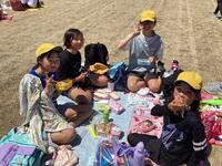 中学校の運動場は水はけもよくバッチリの状態でした。けいどろは「中学生VS小学生」「先生たちVS子どもたち」で盛り上がり、縦割り班で小中学生が一緒にご飯を食べたり、昼休みに長なわやサッカー・フリスビーで遊んだりとたっぷり体を動かし、仲良く時間を過ごしました。