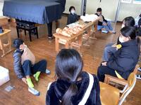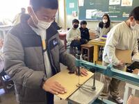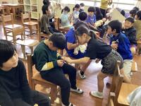 湯前中学校の先生に来ていただき、5年生で図工の授業を実施しました。今回は「糸のこ」。練習用の段ボールを思い思いにカットしながらコツをつかみ、作品づくりに挑戦です。