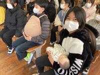 実物大の赤ちゃん人形を抱っこさせてもらったり、妊婦さんの体験をしたり、おなかの中の赤ちゃんの写真画像を見せてもらったりと、子どもたちはずっと興味津々で聞き入っていました。そばで聞いていた私も、我が子のことを思い出してずっとウルウルしていたくらい、いいお話でした。