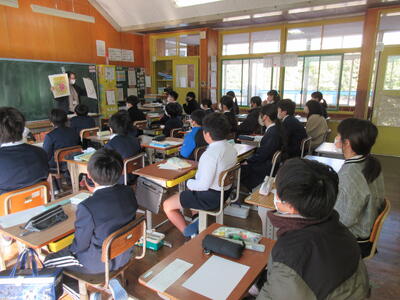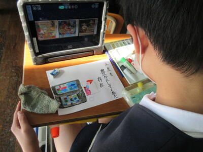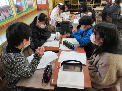 また、国語の授業では、自分の班で話し合ったあとに、他の班とメンバーを入れ替えて更に話し合いを深めていく「ワールドカフェ形式」の対話学習を行いました。