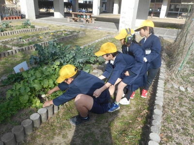 ひまわり1組の畑で育てていたかぶが生長したので、みんなで収穫しました。1年生の国語の教科書に載っている「大きなかぶ」のお話のように、子どもたち4人で連なってかぶをぬきました。「うんとこしょ、どっこいしょ!」と声と気持ちを合わせて引っ張ると、真っ白いかぶが地面から顔を出し、子どもたちから歓声が上がりました。その日のうちに持ち帰りましたが、早速、食卓に上ったご家庭もあったようです。自分で調理して食べたらおいしかったと話す児童もいました。畑には、まだまだいろいろな野菜を植えているので、今後も収穫が楽しみです。