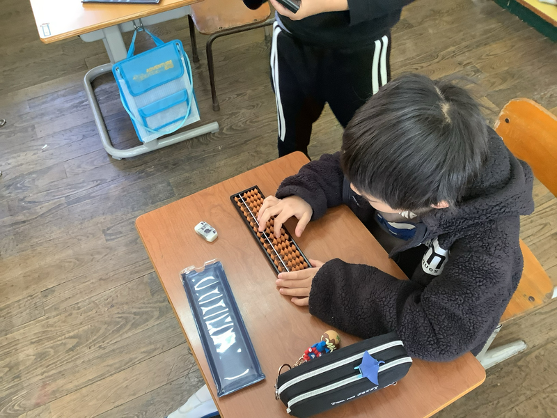 算数では、3年生で最後の単元「そろばん」を学習しました!