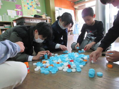 ペットボトルの蓋つみバトル、○○と言えば・・の以心伝心ゲーム、ペットボトルにイン!、簡単おやつ作りなど・・・。みんなでワイワイ楽しんだり、協力しながら調理したりしながら、仲を深め合いました。6年生も「すごく楽しかったです。」とニコニコ。良い思い出づくりができました。