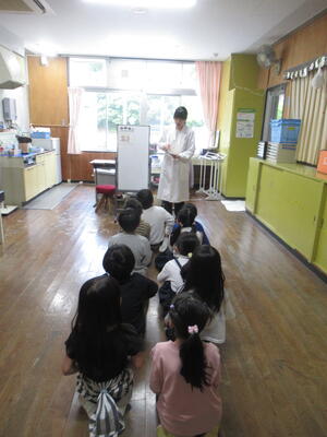 はじめに、マッチを使ってアルコールランプに火をつける活動を行いました。初めてマッチを使う子も何人かおり、少し緊張した様子でしたが、友だちと声をかけ合いながら、慎重に取り組んでいました。