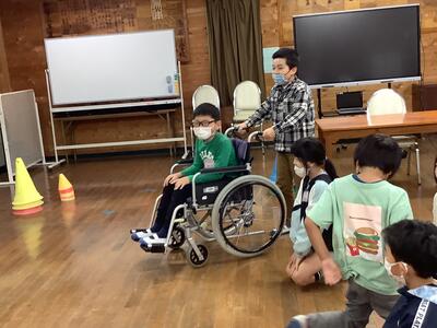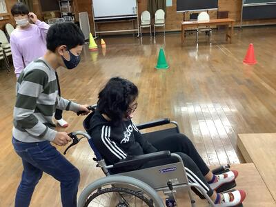 アイマスクを使った全盲者体験(介助)、車いす体験(介助)を行いました。いつもとは、違った感覚で、いろんなものの見方も違ったのではないでしょうか。貴重な体験をさせていただきました。この学習を通して、手助けが必要な人々の生活や気持ち、介助の仕方、また、すべての人が暮らしやすい町づくりなど、いろいろなことに思いが広がっていくことを願っています。