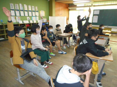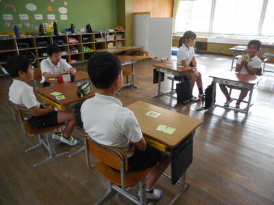 できた漢字をみんなに見せて、「これは~という漢字です。」と発表していきました。異学年の集団ですが、和気藹々と楽しく学習しています。