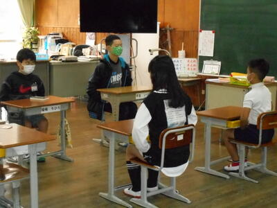 湯浦小学校は、毎朝8時15分にチャイムが鳴り、1日がスタートします。そして、チャイムと同時に立腰し、心を落ち着かせてから、朝の会を始めます。