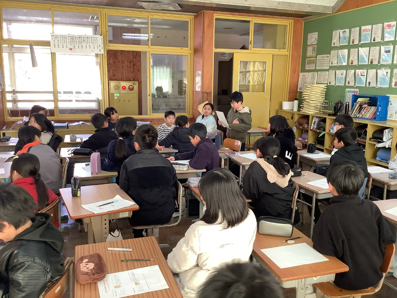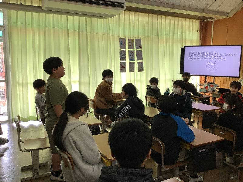 また、外国語の学習では、すごろくゲームを通して、これまでの学習内容の復習や冬休みの思い出の伝え合いをしました。