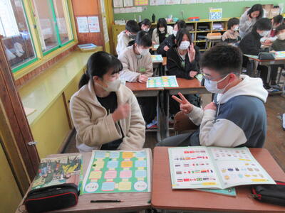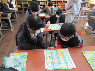 また、外国語の学習では、すごろくゲームを通して、これまでの学習内容の復習や冬休みの思い出の伝え合いをしました。