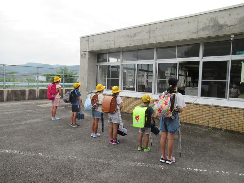 毎朝、登校班ごとに職員室に向かって「おはようございます!」と気持ちのよい挨拶。