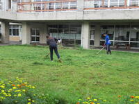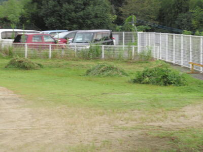 ※蔓延防止等重点措置の期間であるため中止も考えましたが、PTA三役及び環境整備部長さん等の熱い思いで「有志による草刈り機中心の作業」を行いました。