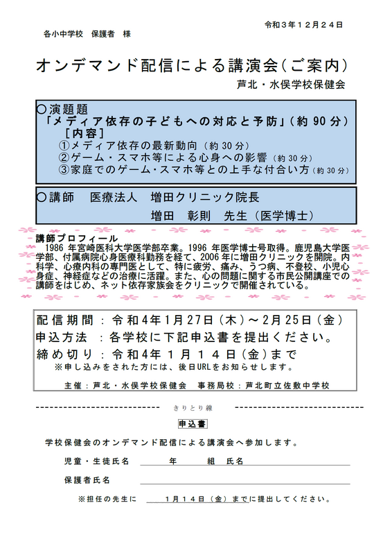今回、芦北・水俣学校保健会では医療法人増田クリニックの院長の増田先生に依頼し、