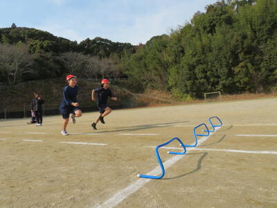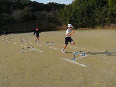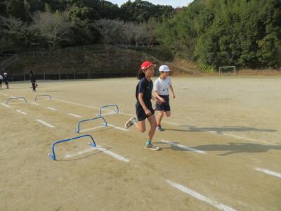 4年生の体育では、ハードル走に取り組みました。