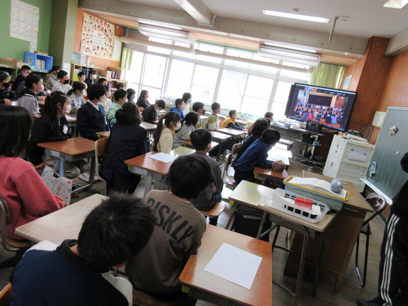 残念ながら在校生は卒業式に参列できませんが、この会の中で「感謝の気持ち」を伝えるとともに、卒業生である6年生の「湯浦小に対する愛校心」や「頑張り」を伝統として受け継ぐ意欲を高めることができた時間となりました。