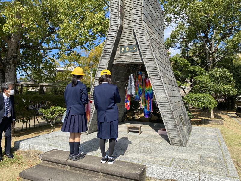 これからの平和を願って、千羽鶴の献納と黙祷を捧げました。