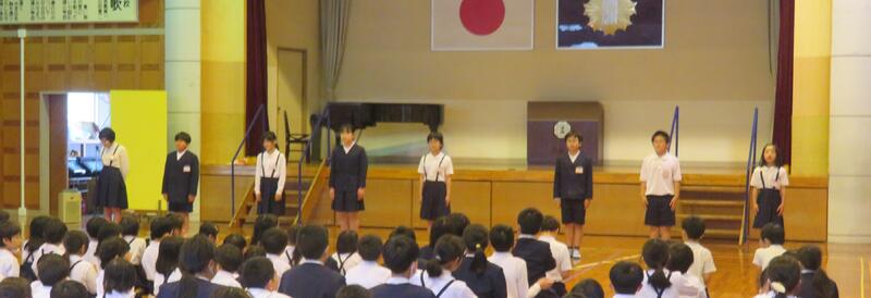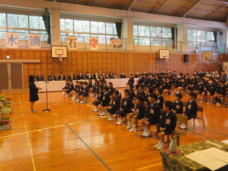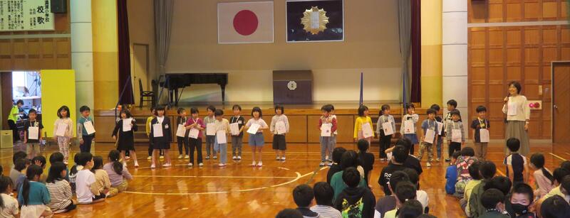 新1年生、26名が、全校児童の前で自己紹介をしました。